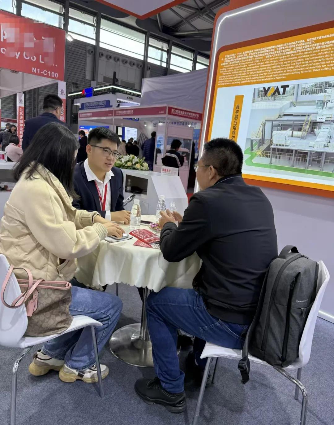 展會現場,我們的展位上國內外客戶絡繹不絕,我們銷售與技術人員同他們共同探討真空冶煉工藝和相關問題的解決方案,一起分析行業發展趨勢!近距離的和客戶分享了我司的先進裝備和創新技術!獲得了行業國內外客戶群體的高度評價及潛在合作機會!
